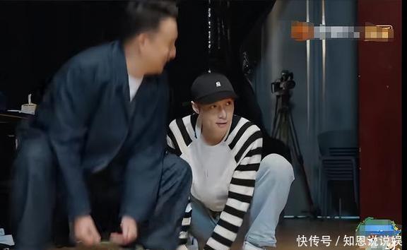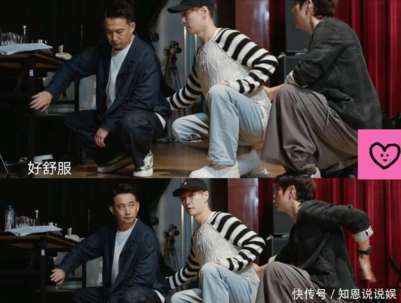 旁边的年轻人张艺兴看到这个情况,赶紧蹲下给他拍打腰部,挺关心的。