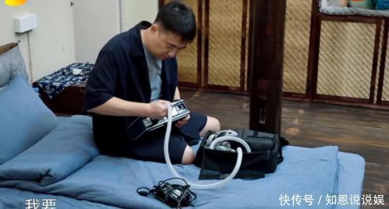 晚上睡觉的时候,黄磊又一本正经地拿出了一台小型呼吸机。